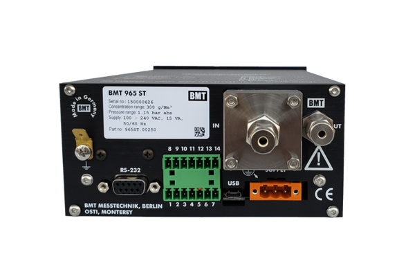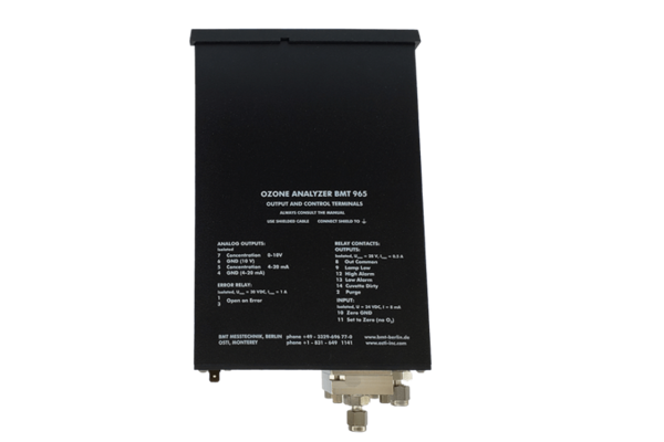 The OZONE ANALYZER BMT 965 ST includes decades of experience with ozone photometers and their industrial applications. Superior stability of the photometer is achieved by use of a true dual beam optical system with an extremely long-life mercury lamp. MTBF of the instrument, including the lamp, is in excess of 65,000 hours. Excluding the lamp, it is 120,000 hours. An eight gigabyte non-volatile log memory is included, providing virtually unlimited storage capacity for concentration and error logs. If connected to a PC, the instrument acts as an external USB drive, from which concentration and error logs can be downloaded. Logs can also be copied and firmware can be upgraded without an external computer just by connecting a USB flash drive. Complete control of all operating parameters is provided with the Windows software BMT 965 Link. Power supply is 100-240 VAC, or 12-36 VDC on request. As an option the instrument can be equipped with an Internal Purge Unit (IPU) (solenoid valve plus air pump) for fully automatic zeroing. A broad spectrum of field-proven accessories - from simple fittings and tubing up to a thermoelectric sample gas dryer - helps the user with the application and installation of the OZONE ANALYZER BMT 965. Please ask for our assistance!